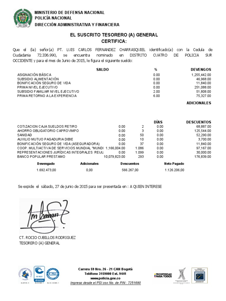 El Suscrito Tesorero A General Certifica
